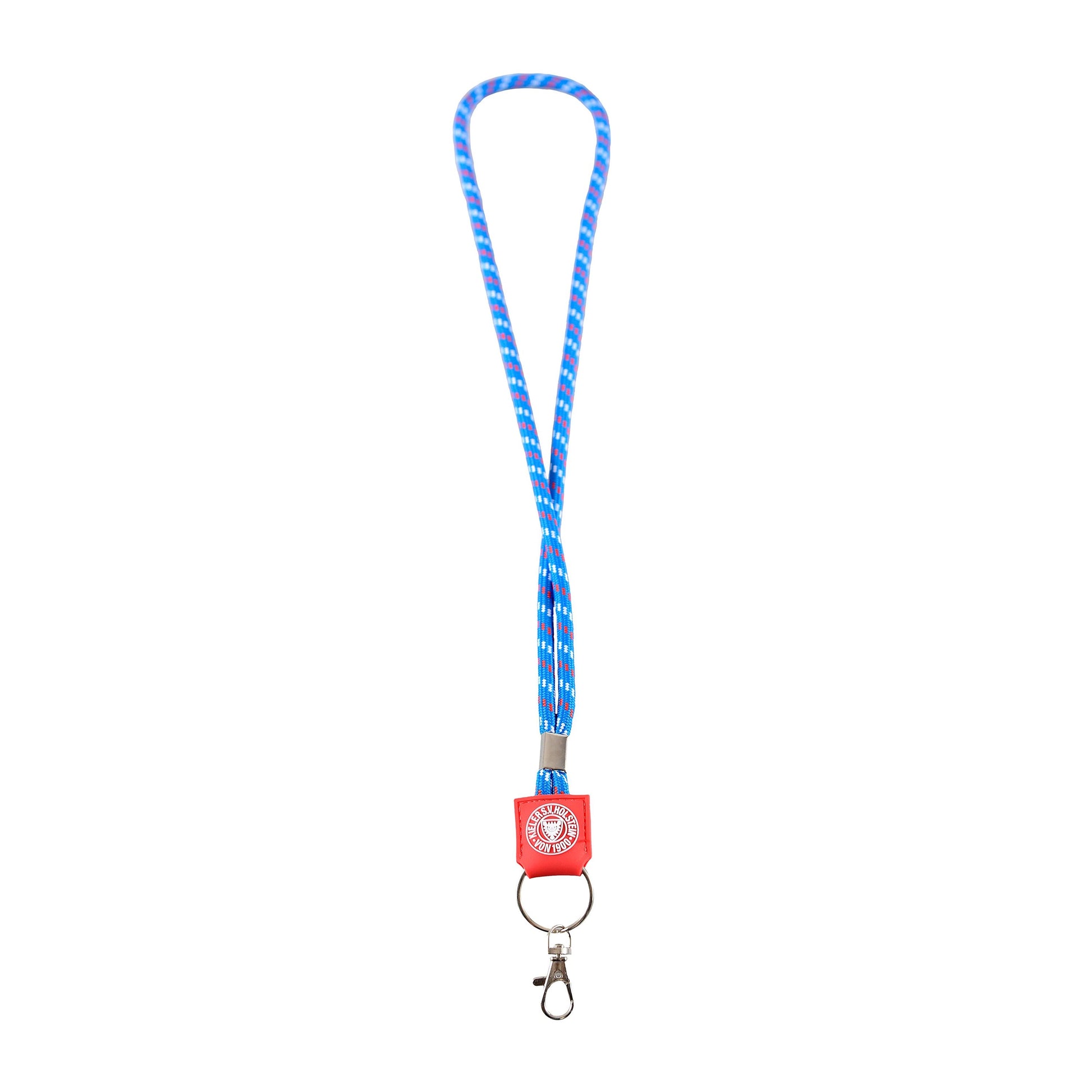 Mit dem Schlüsselband „Seil“ hast Du Deine Schlüssel nicht nur immer griffbereit – Du trägst auch ein Stück Holstein Kiel stets bei Dir. Das Band in Blau ist mit weißen und roten Verzierungen im maritimen Stil gestaltet und erinnert an ein echtes Bootsseil in unseren Vereinsfarben.