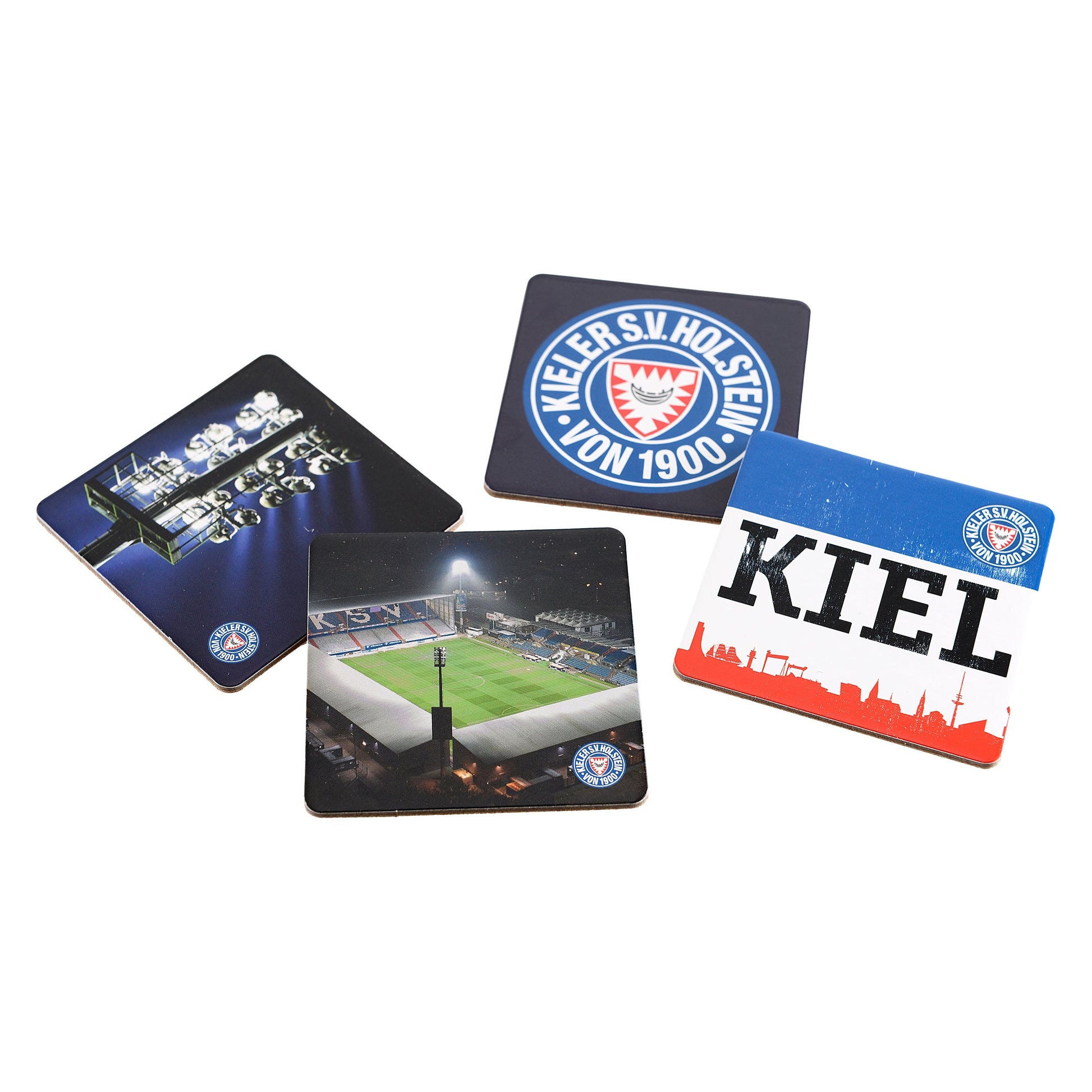 Vier hochwertige Untersetzer mit Motiven rund um Holstein. Die Unterseite ist aus Kork.